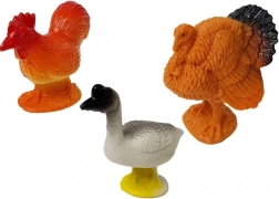 The look and coloring resemble realistic counterparts. The whole set contains about 20 figurines and a mat with the landscape of a beautiful, large farm. Nature lovers will be delighted. On the mat there is a lovely country house and large fields for the animals. The set includes at least: cows, horses, sheep, turkeys, a dog, a cat, a rooster, a tom turkey, a goose.