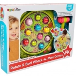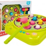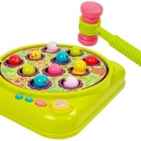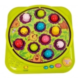 Challenge your family to a competition and find out who is the fastest mole whacker! After turning the game disc using the GO button, the moles appear. You can adjust the tempo of the game faster or slower using the slider. Your task is to hit the mole when it peeks out using the rubber mallet. A good strike counts when the mole shoots out of the area.