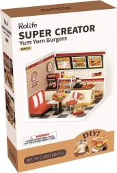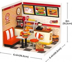 This miniature house is the perfect way to enjoy the classic feel of fast food from the comfort of your home. Embark on a journey of creative construction by assembling the restaurant with a service counter, display case, and seating area. Each piece fits securely into another, ensuring a stable and durable build without the need for glue.