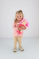 Adorable rag doll Mazlinka with pink hair and a soft body is ideal for cuddling and first play. Thanks to the gentle material, friendly expression, and lightweight design, children will love her from the first touch. A perfect companion for newborns 0m+ and older kids.