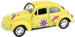 This detailed die-cast WELLY VOLKSWAGEN Beetle model at 1:32 scale combines a durable build with an impressive floral design in 60s style. Thanks to its compact length of 12 cm, it fits in a pocket or handbag and brightens up waiting and travel. The pull-back mechanism ensures a quick start and plenty of action-packed fun, while the opening doors and carefully crafted interior enhance the realistic impression.