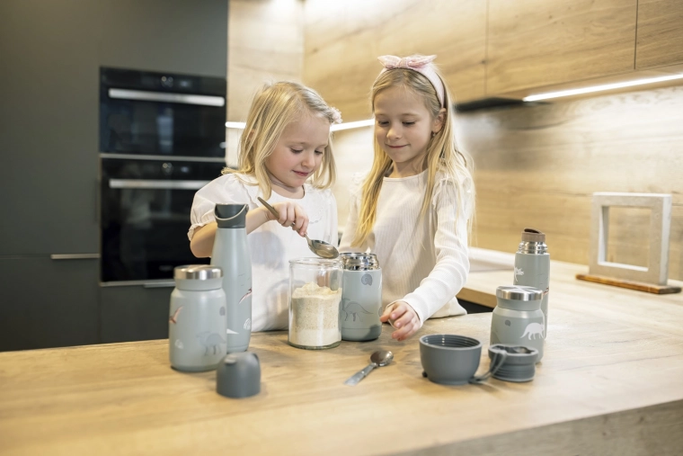 Silicone dining set for kids with owl motif, 8 pieces, beige