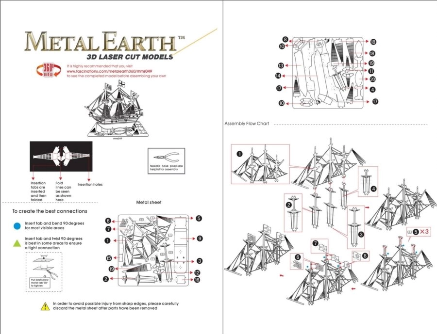 The parts connect using locking tabs — simply bend them with pliers and follow the logical step-by-step workflow.