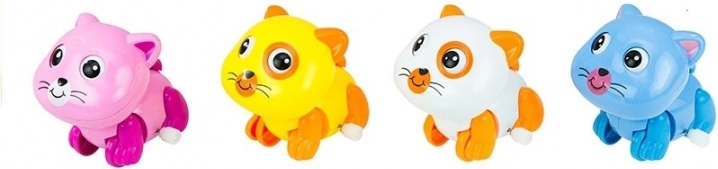 Cute wind-up cat for everyday fun! When wound up, it walks on flat surfaces, wags its tail, and moves its legs and eyes. Cheerful colors invite play and collecting; the package contains 1 pc. Compact dimensions 8 × 7.5 cm and no batteries — just wind it up.