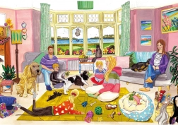 Discover four detailed illustrations capturing joyful moments with dogs – from nature walks to homely comfort. Each puzzle measures approximately 49 × 34 cm, offering a colorful scene and premium print that brings out fine details and vivid tones. The assembly feels smooth and satisfying thanks to precise cutting.