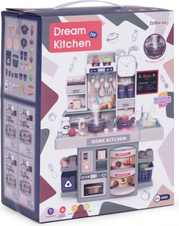 Kids’ kitchen with sounds, LED lights, steam generator, 35 accessories