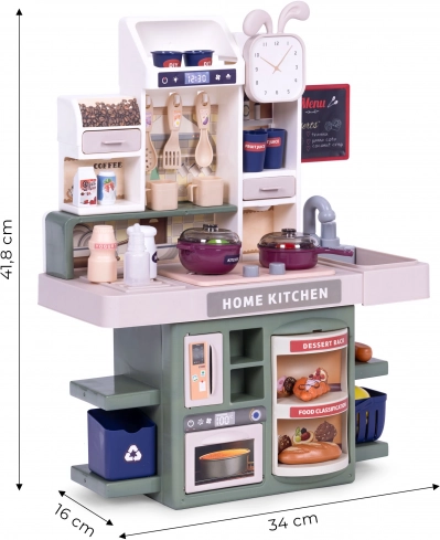 Every child loves to watch, imitate, and help adults with everyday tasks. With this kitchen, your child can play chef and prepare tasty meals for the whole family. The toy teaches basic cooking rules, and develops creativity and manual dexterity.