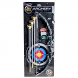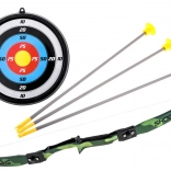 Enjoy a safe and fun game with the children's archery set! The set includes a bow with a colorful design, three suction cup arrows, and a round target. Ideal for beginner young archers.