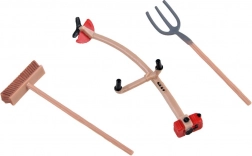 The farmer figure with a wheelbarrow, pitchfork, rake, and broom adds dynamism to play and teaches kids to care for animals and keep things tidy.