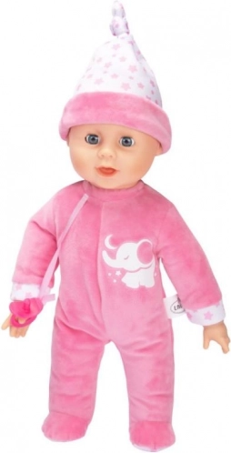 Pleasantly soft build, removable pink outfit, and pacifier support fine motor skills and nurturing play.