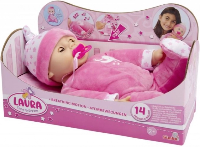 Good night, little Laura! After a day full of play, the doll is ready for sleep—she gently “breathes,” her tummy rises and falls, and when laid down she closes her eyes. With a soft body and sweet expression, she’s great for cuddling and imaginative play.