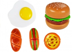 Play set for little chefs with a hamburger, hot dog, egg, and other Velcro-fastened treats in a practical crate. Supports the development of fine motor skills, creativity, and role play. Safe plastic parts, ideal for children aged 3+.