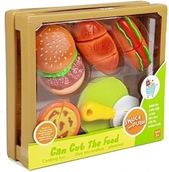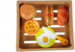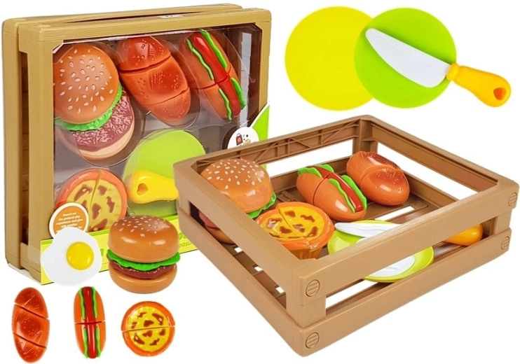 Fast Food Cutting Set with Velcro in a Wooden Crate