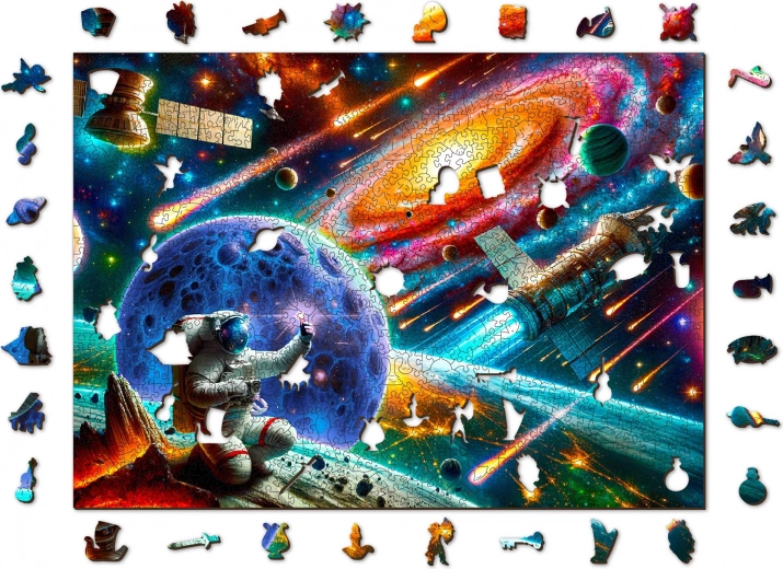 Discover the joy of puzzling with the WOODEN CITY Exploring Space wooden puzzle. Thanks to laser-cut pieces, many of which have unique animal shapes, you’ll get a beautiful image and a fun challenge. The puzzle offers higher difficulty with fewer pieces, smooth splinter-free edges, and is completely eco-friendly and plastic-free.