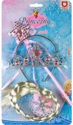 An enchanting set for little princesses includes a tiara, a magic wand, and a long braid approx. 62 cm in soft pink. Perfect for carnivals, costumes, and play at home; suitable for ages 3+.