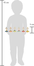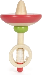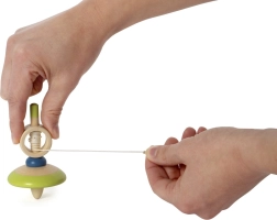 This cheerful top, combining natural wood and bold colors, is a timeless toy that will keep kids entertained at home and on the go. Thanks to the string mechanism it is easy to spin and motivates children to practice dexterity and focus. High‑quality solid‑wood construction ensures long service life and safe play.