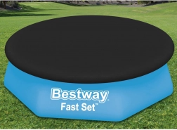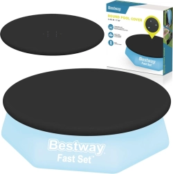 Keep your pool water clean with ease. This universal BESTWAY cover for easy-set pools with an inflatable ring, 244 cm in diameter, reliably protects against debris, features drainage holes to prevent water buildup, and includes a securing cord for a firm fit. Made from durable PVC for long life and easy maintenance. An ideal accessory for quick protection against leaves, insects, and dust.