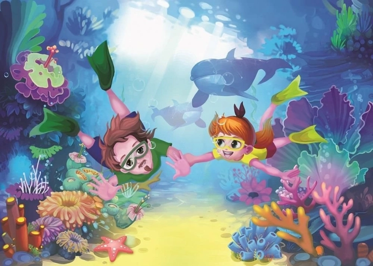 Discover a fun puzzle featuring brave divers, offering 50 pieces ideal for quick assembling and concentration practice. Once completed, it creates an image measuring 48 × 34 cm that will delight both kids and adults.