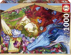 The Educa "Sant Jordi" puzzle offers a unique experience tied to a piece of art that blossomed in the town of Puigverd de Lleida near Barcelona. The puzzle depicts a woman and a dragon surrounded by flowers, bringing to life the legend of Saint George (Sant Jordi) and the dragon.