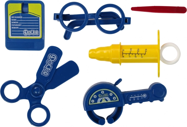 - scissors, syringe, stethoscope, glasses, tweezers, patient card