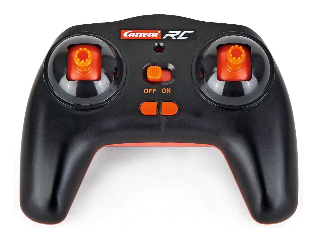 An ergonomic black remote controller with red control sticks provides simple and intuitive control of your RC car.
