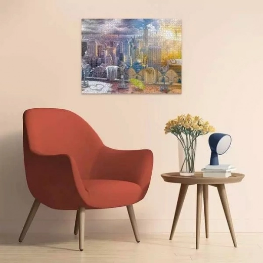 Enjoy relaxation and focus with premium Ravensburger puzzles featuring a striking New York motif contrasting summer and winter. Thanks to the anti-reflective surface with a linen texture, the image is clear and free from distracting glare—great for both daytime and evening puzzling.