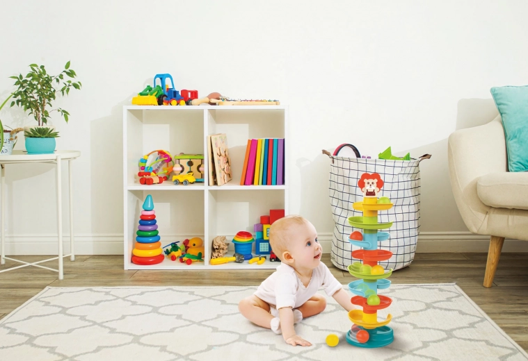Shop the Ball Tower Slide Track Set for toddlers aged 18 months and above. Features 8-story slide, 6 colorful balls, and promotes skill development. Safe and non-toxic!