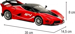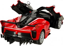 Experience the thrill of driving the legendary supercar Ferrari FXX with this remote-controlled model. The miniature is highly detailed, with faithful proportions, aerodynamic lines, and realistic features like opening doors and front lights. Rubber tires with a diameter of 5 cm provide excellent traction on various surfaces while protecting the floor.