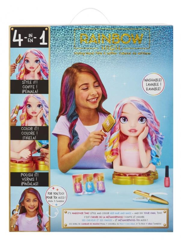 A brand-new styling head inspired by the most popular Rainbow High doll, Bella. You can create highlights, dye hair, or paint nails.
