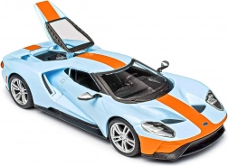 This finely crafted Bburago model brings the legendary Ford GT to your collection in an attractive combination of light blue with orange racing stripes. Thanks to quality die-cast metal and accurate proportions, the model looks highly realistic and will stand out on any shelf or in a display case.