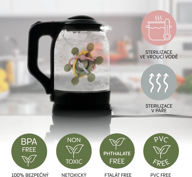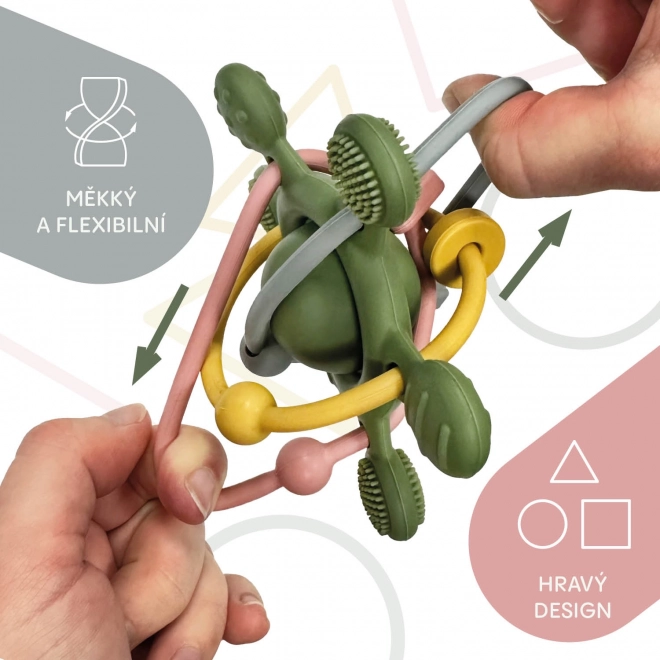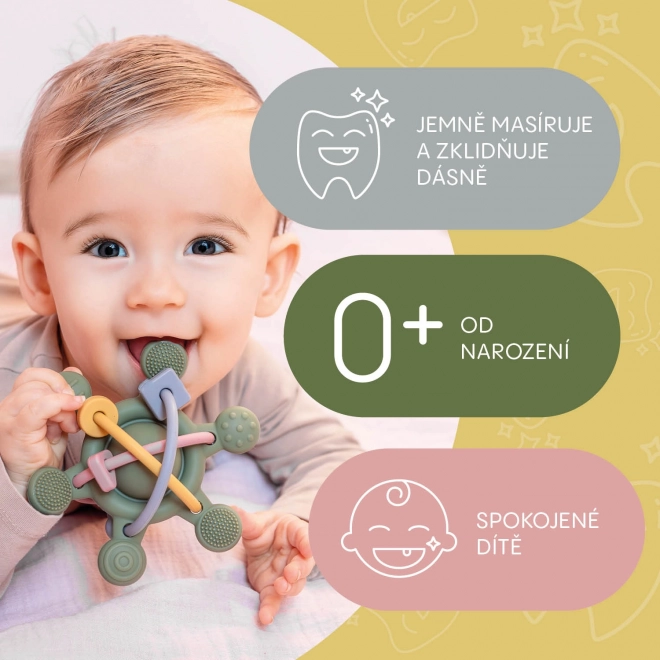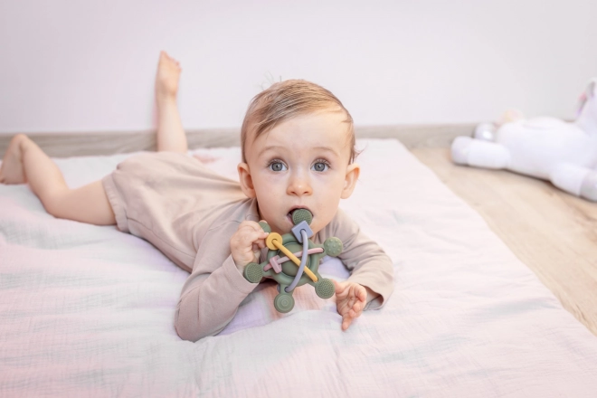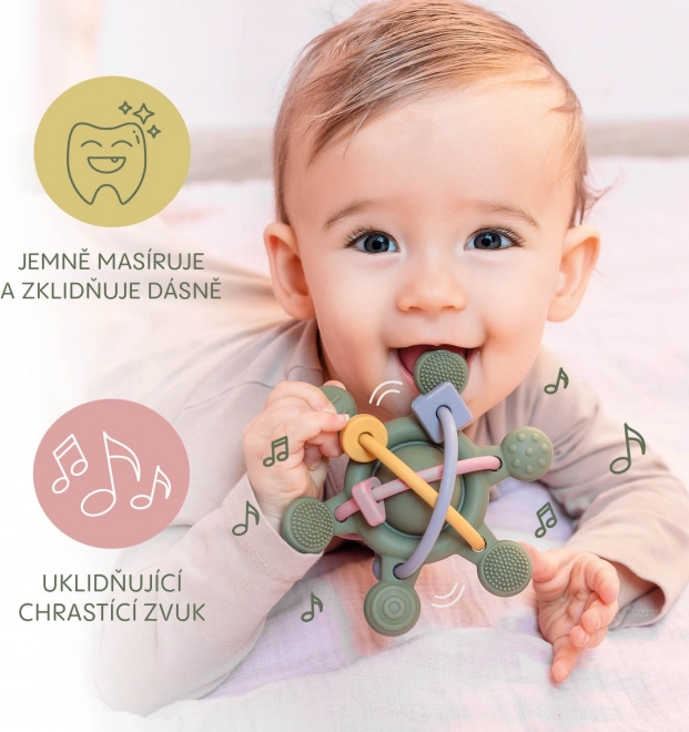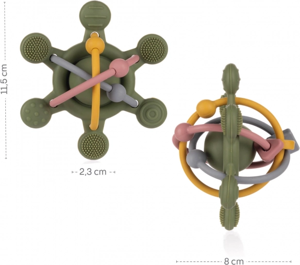 Discover the joy of exploration with our soft silicone rattle, designed especially for little hands. With various textures and shapes, it’s ideal for sensitive gums, making the eruption of first teeth more comfortable. This rattle not only provides gentle sensory stimulation but also supports the development of your baby’s motor skills. Cheerful colors and a pleasant rattling sound keep their attention and make the teething phase more enjoyable.
