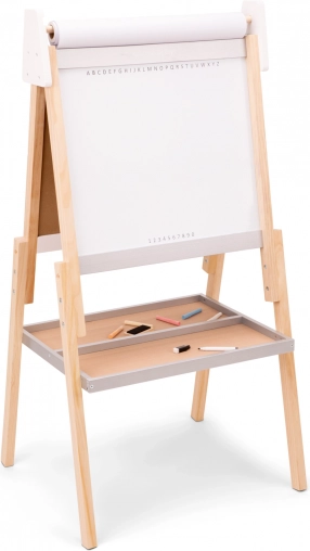 Wooden Double-Sided Board is ideal for small artists who want to paint, draw, and write. The combination of a traditional board, magnetic surface, and paper roll provides many opportunities for creative expression.