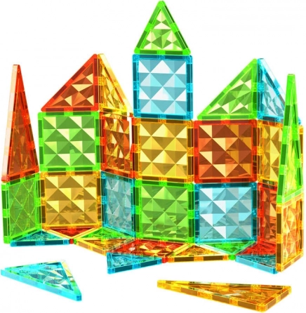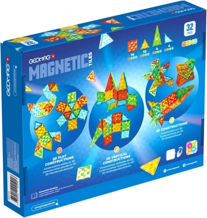 Geomag Gems not only entertain children but also educate them, introducing them to the world of science and construction in an attractive and engaging way. Geomag Gems 32 is a set of magnetic tiles designed to develop creativity, manual dexterity, and spatial imagination in children aged 3 and up. Colorful square and triangular tiles, adorned with a striking glossy texture, encourage the creation of sparkling structures. Thanks to easy magnetic connections, children can build 3D shapes such as towers, houses, or other imaginative constructions. The toy supports the development of creative thinking and motor skills and allows children to naturally experiment with the principles of geometry and balance.