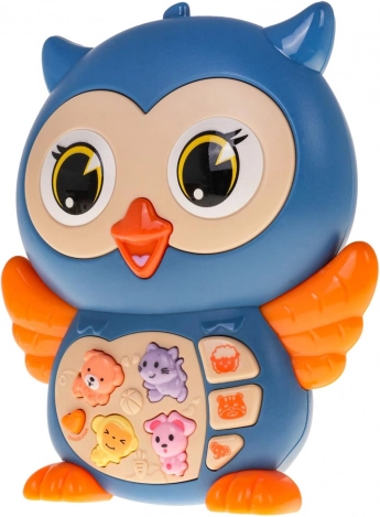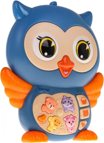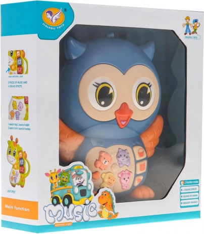 . | Interactive owl with sound and light functions for children from 6 months. The owl is made of the highest quality plastic, impact-resistant and safe for toddlers, with no sharp edges. The owl is made in vibrant colors to attract the child’s attention and encourage play. On the owl’s belly there is a panel with buttons that activate animal sounds (in the first mode), melodies, Do-Re-Mi sounds (in the second mode), and light effects in the form of flashing lights on the owl’s wings. Modes are switched with a heart-shaped button. The toy has volume control. Powered by 2 x AA 1.5 V batteries (not included) .Toy features: .- suitable for children from 6 months of age, .- made of the highest quality plastic in bright colors, .- safe, with no sharp edges, .- impact-resistant, .- light effects: glowing owl wings, .- sound effects: .* mode with animal sounds: dog, kitten, monkey, sheep, tiger, elephant, .* mode with sounds: melodies, Do-Re-Mi sounds. |