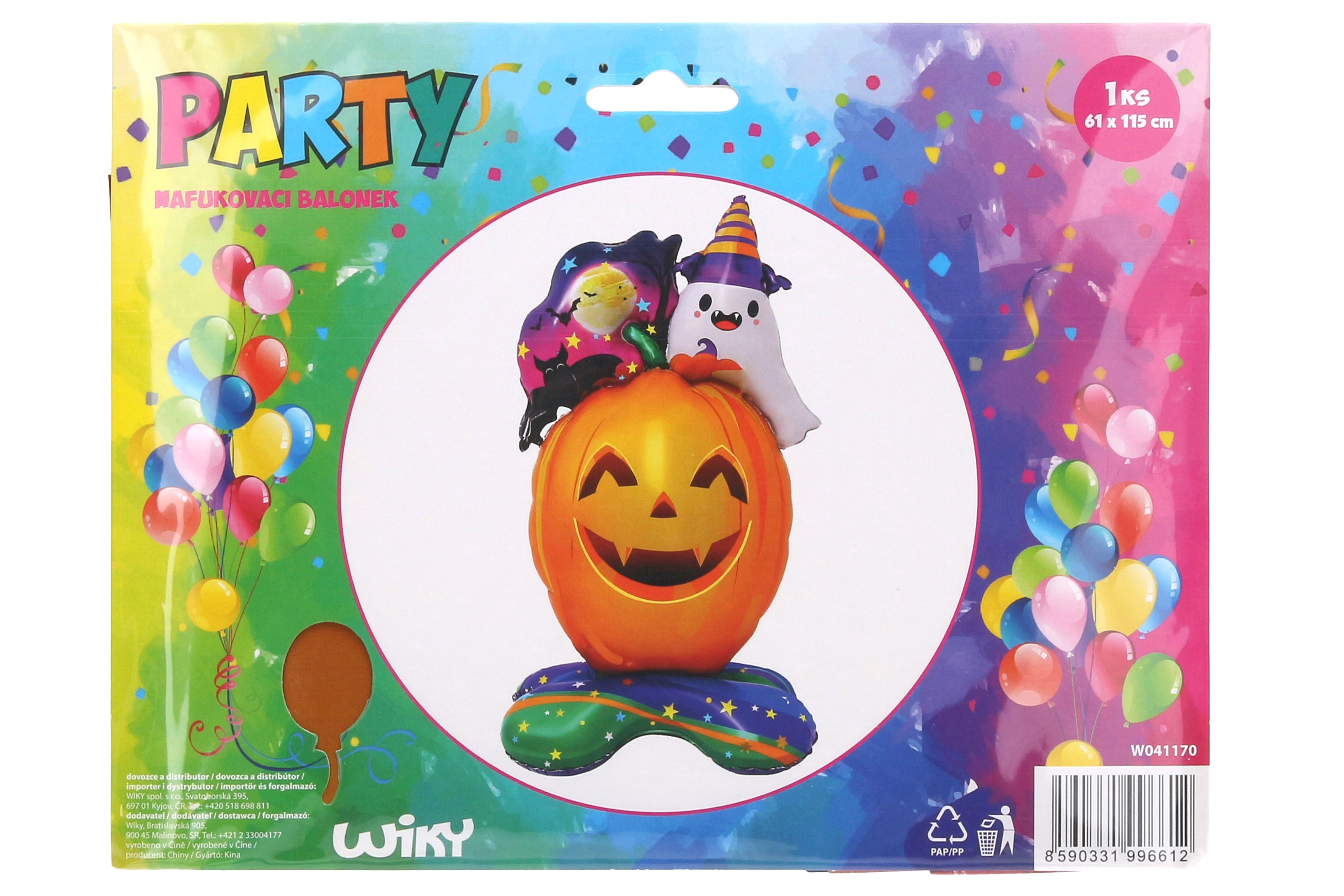 This inflatable balloon is ideal for Halloween or autumn decorations. With dimensions of 61x115 cm, it becomes an eye-catching ornament for your party or interior. It perfectly complements other autumn decorations. Easy to inflate and retains air for a long time, making it reusable.