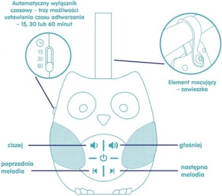 The interactive owl is an ideal companion for peaceful bedtime routines and daytime fun. Gentle melodies create a sense of security, while practical features like the timer and volume control let you tailor playback to your baby’s needs. Thanks to its light and compact design, you can easily take it anywhere.