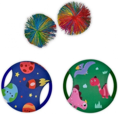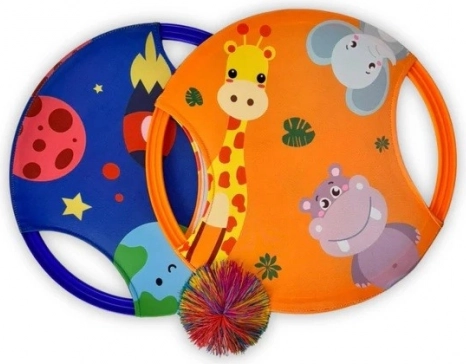 A fun set for kids and adults that supports movement coordination, reflexes, and active outdoor play. Two colorful paddle targets with cheerful designs and soft pom-pom balls bring plenty of movement and joy for play at home or in the garden. Safe design for children aged 3 and up.