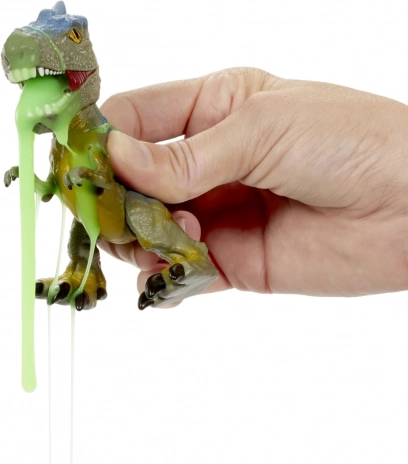 Open the jaws, remove the hidden pieces, assemble your dinosaur, and feed it slime. Find out whether it “vomits,” “poops,” or releases slime.