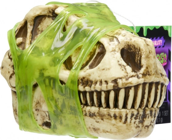 Discover the world of GROSSMOS, where foam, slime, and dinosaurs blend into an unforgettable play experience. Just add water to the T-Rex skull, watch the bubbling foam, and gradually dig out the hidden dinosaur parts and accessories. Then assemble the figure, feed it thick slime, and see what it does – vomit, slime, or make a “poop”.