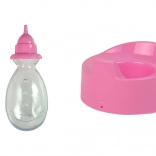 • Includes a bottle and potty