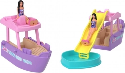 Boat, removable slide, heart-shaped pool, mini doll in swimsuit