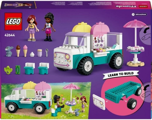 LEGO Friends Ice Cream Food Truck from Heartlake for kids aged 4+. 92 pieces, 2 mini-dolls, a bunny, and lots of accessories. Easy building with LEGO Builder.