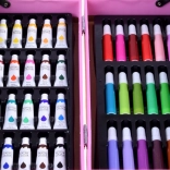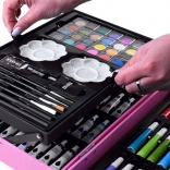 The set contains paints, brushes, crayons, and much more, ideal for creating various art pieces.
