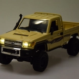 - Realistic design: Detailed body finish, opening front hood, rear bed, off-road rubber tires, and signature Toyota Land Cruiser details.