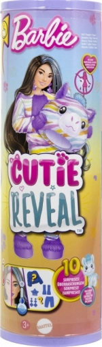 The BARBIE Cutie Reveal “Sweet Dreams” doll combines a cuddly plush costume with fashion play. Transform the colorful zebra suit into stylish outfits — including a reversible jacket with a floral print and rainbow zebra-skin effect. The box also includes shoes, shorts, and jewelry for endless style mixing.