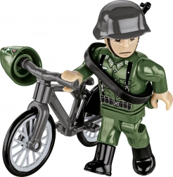 A tanker with gear and an infantryman with rifle, helmet/peaked cap, and a bicycle expand your scenes and dioramas.