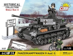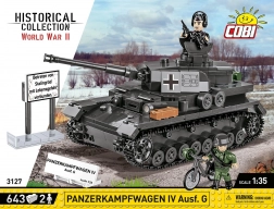 This realistic model of the PzKpfw IV Ausf. G will delight collectors, history enthusiasts, and builders. The kit offers rich features: working tracks, a rotating turret with gun elevation, opening hatches, and a service cover with a mock engine. Two detailed minifigures — a tanker with cap, headset, binoculars, and pistol, and an infantryman with rifle, interchangeable helmet/peaked cap, and a bicycle — broaden both play and display possibilities.