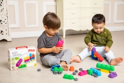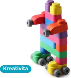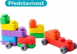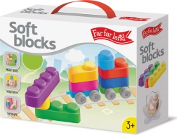 Far Far Land soft building blocks for little children offer safe and creative fun with ten pieces and eight wheels. This set develops creativity, motor skills and hand-eye coordination. Made from soft material suitable as a teether.