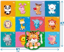 When assembled, the puzzle measures 61x47 cm, an ideal size for playing on the floor or table. A great way to introduce kids to animals from around the world.