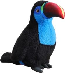 This toucan combines softness and quality with an eye-catching design. Black plumage with blue accents and a multicolored beak give the toy a lifelike look that children will instantly love. Fine seams and careful craftsmanship ensure long-lasting durability even with everyday play.